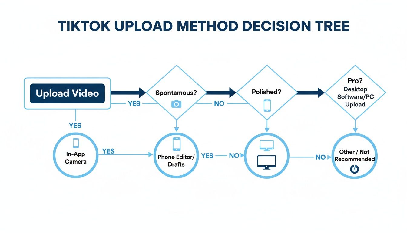Before you even hit the record button, you need to decide how you're going to get your video on the platform. This isn't just a technical detail; it shapes your entire workflow and the final vibe of your content. Your decision really comes down to your goals, what you have to work with, and the kind of video you're making.