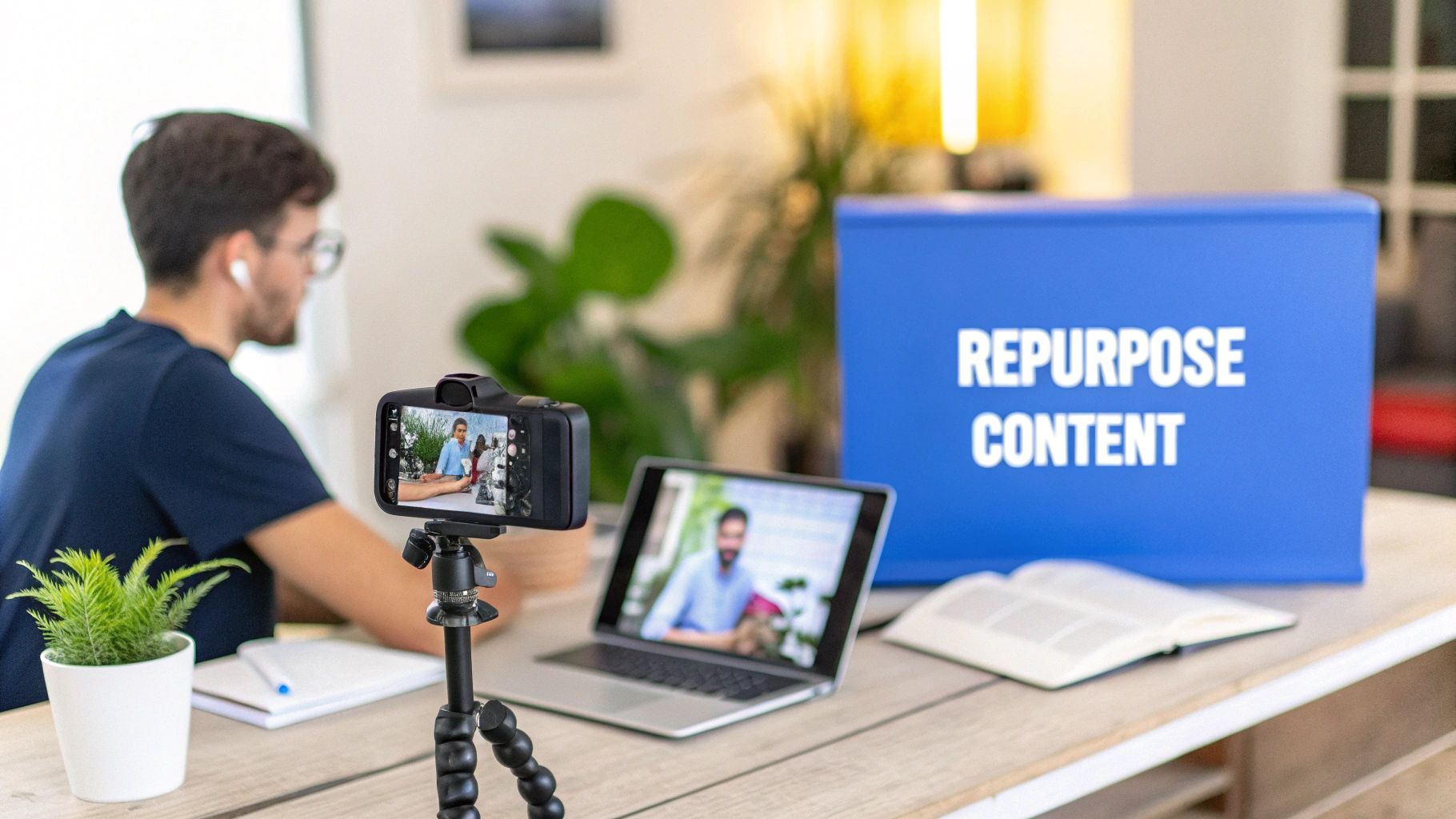 Think of it as making your best content work smarter, not harder. It requires a bit of finesse: downloading your video, reformatting it for a vertical screen, and chopping it up to fit Instagram’s bite-sized formats like Reels or Stories. Done right, it can supercharge your reach and squeeze every last drop of value from your hard work.