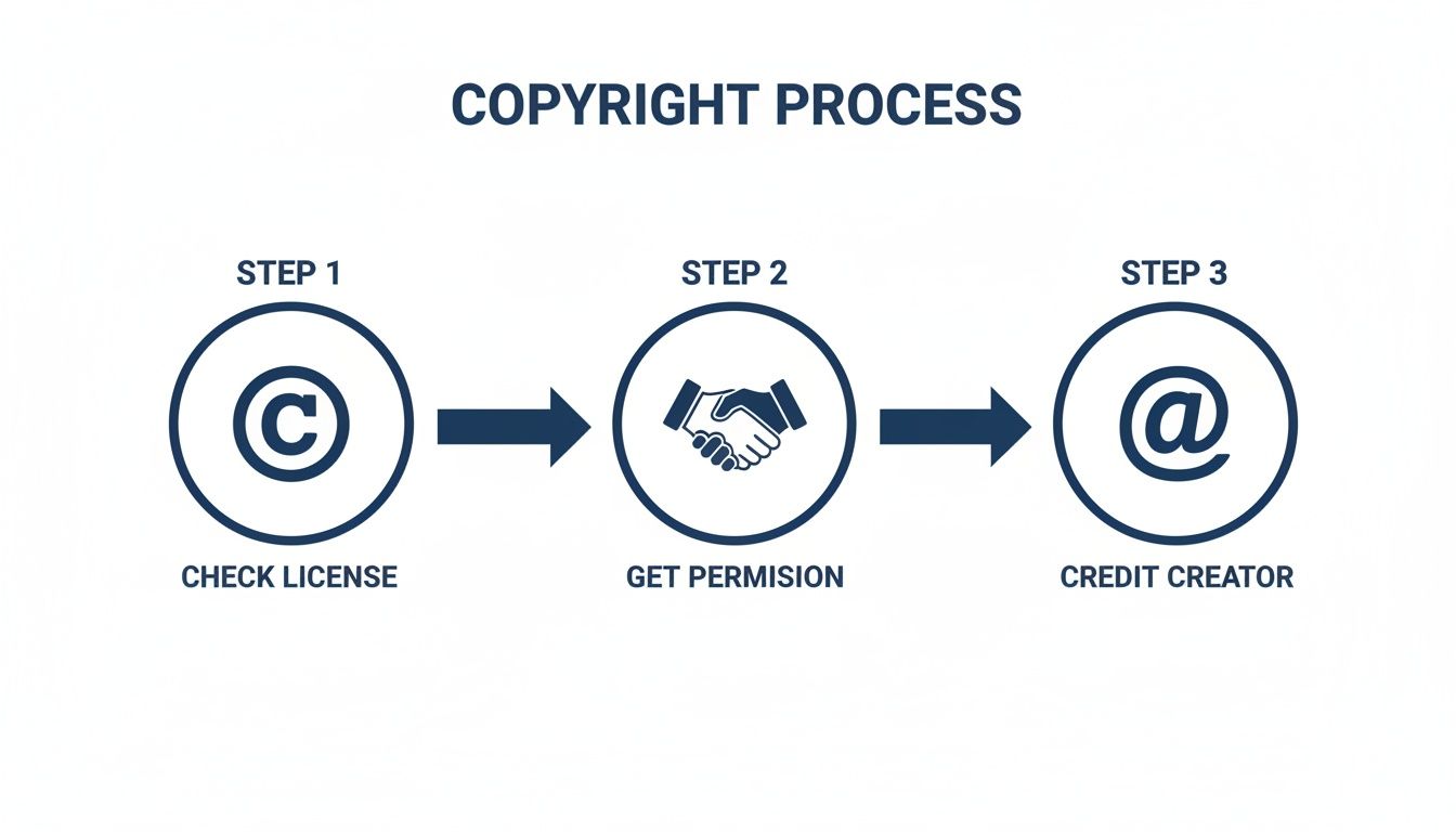 This simple, three-step flow—checking the license, getting permission, and giving proper credit—is the bedrock of ethical content repurposing. Don't skip it.