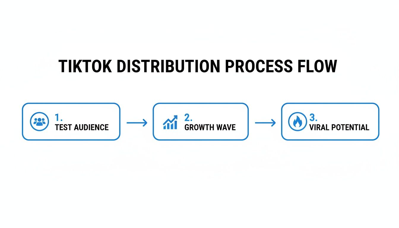 Posting a video on TikTok isn’t like shouting into the void and hoping for the best. It’s way more calculated than that. Think of it like a record label launching a new single. The TikTok algorithm for views doesn't just guess what might go viral; it runs every video through a structured, multi-phase gauntlet to test, validate, and amplify your content based on how real people react.